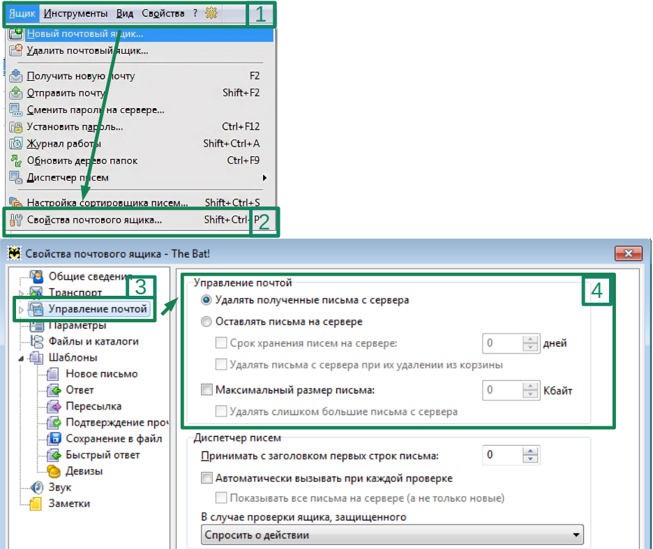 Пример настройки квот в почтовом клиенте The Bat при использование протокола POP3