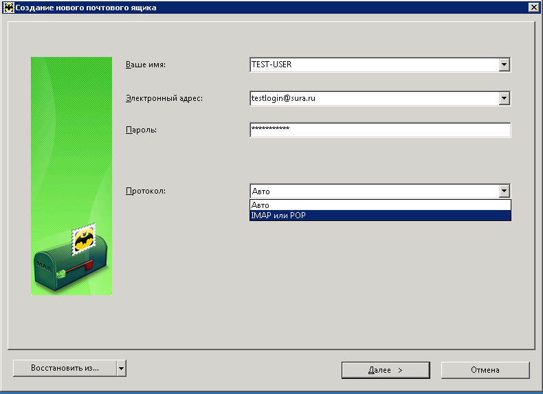 | Пароль | Пароль, который вы используете для входа в почтовый ящик |